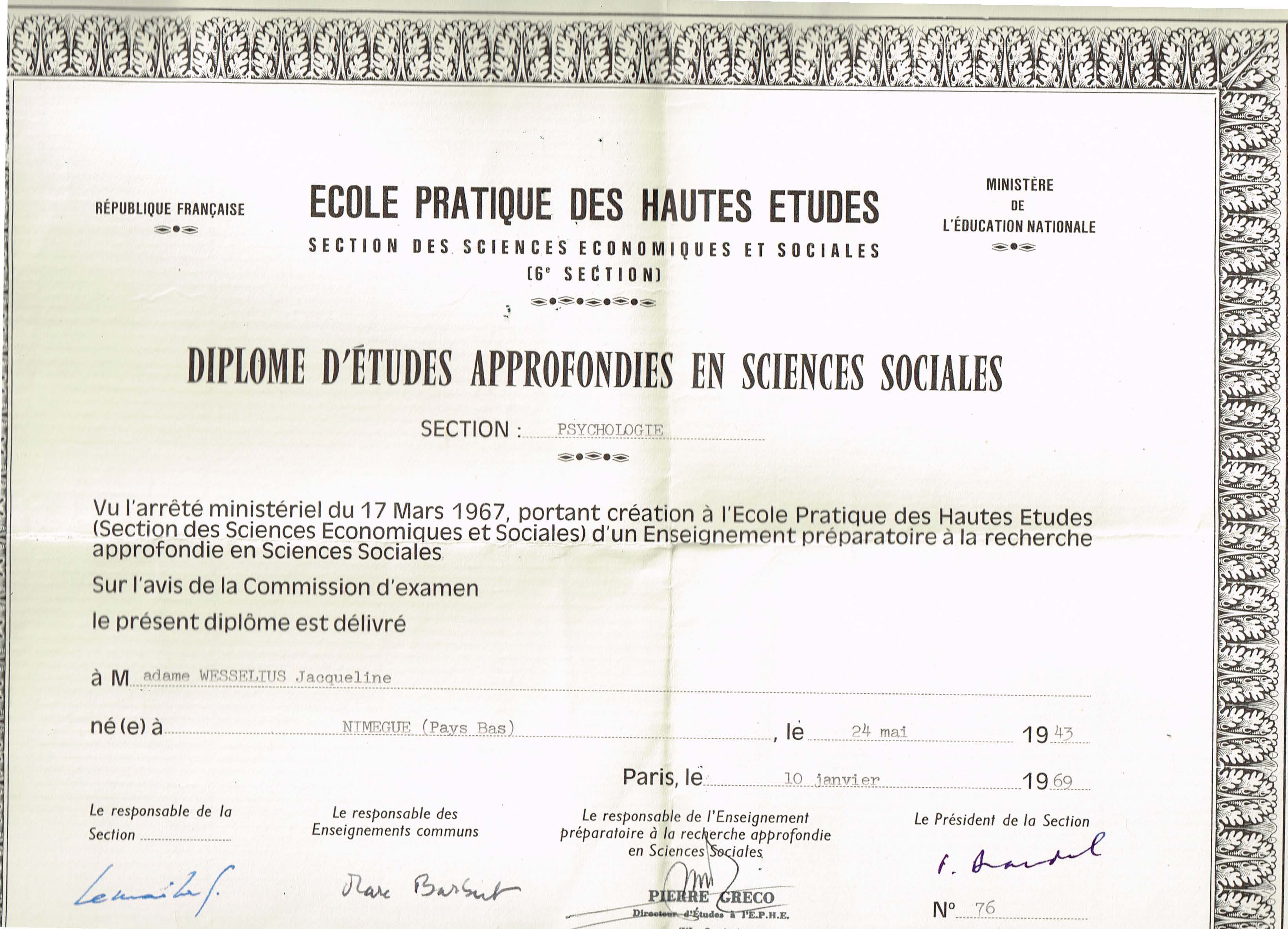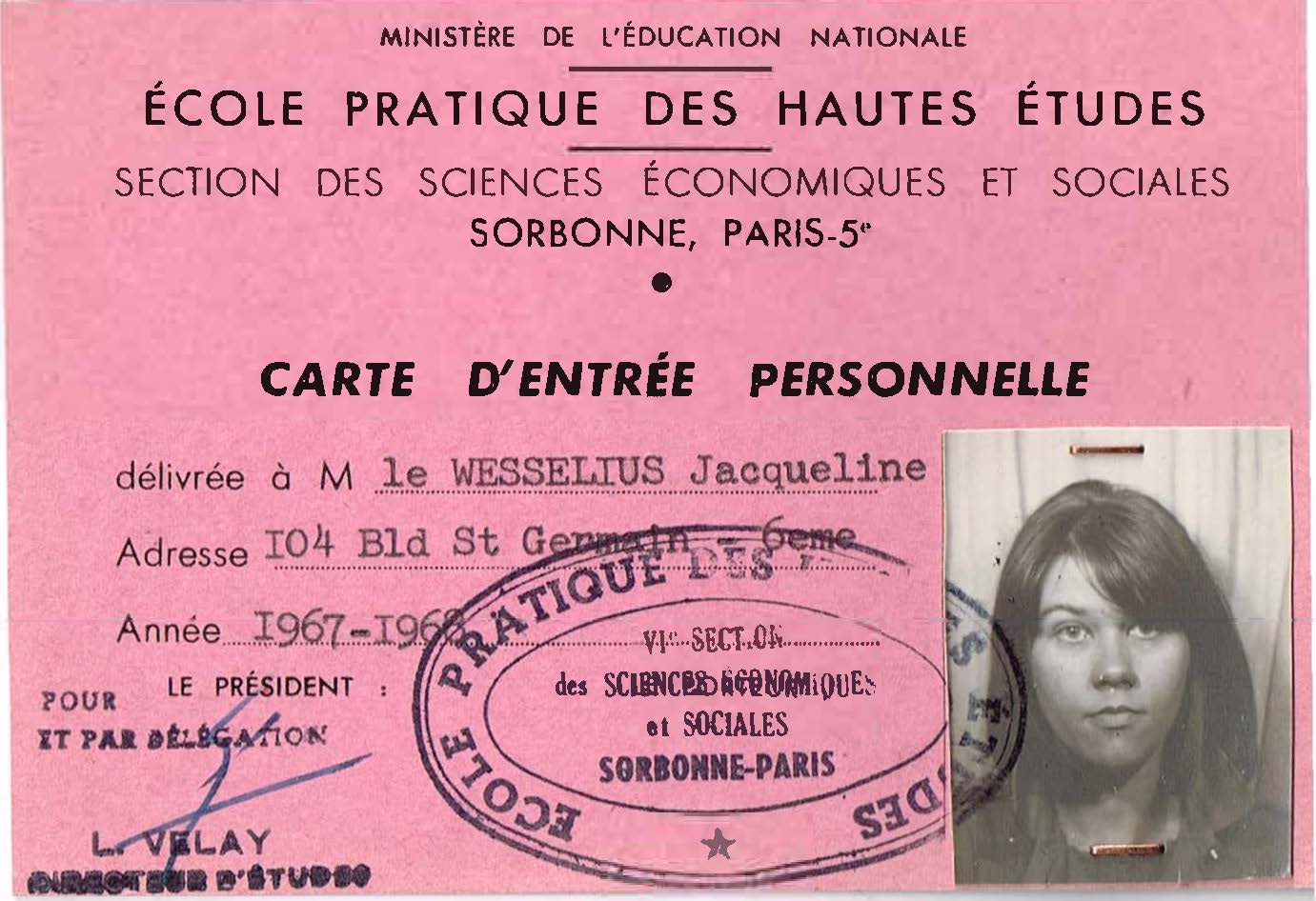 Revenons un peu en arrière. Fin avril, je reçois un mail de l’Ecole, me parlant de ce projet d’exposition à l’occasion des 40 ans de l’EHESS. Mon correspondant me demande si je veux bien remplir un questionnaire pour donner une idée de ce que j’ai fait dans la vie. Vaste programme… Intéressant, me suis-je dit, mais ça ne me concerne pas, car je fus une des pionnières à suivre l’EPRASS (Enseignement préparatoire à la recherche en sciences sociales) à la fin des années 1960 – et donc avant que la VIe section ne se sépare de l’Ecole Pratique des Hautes Etudes pour devenir EHESS (1975). Qu’à cela ne tienne, m’a-t-on répondu, on a les idées larges.