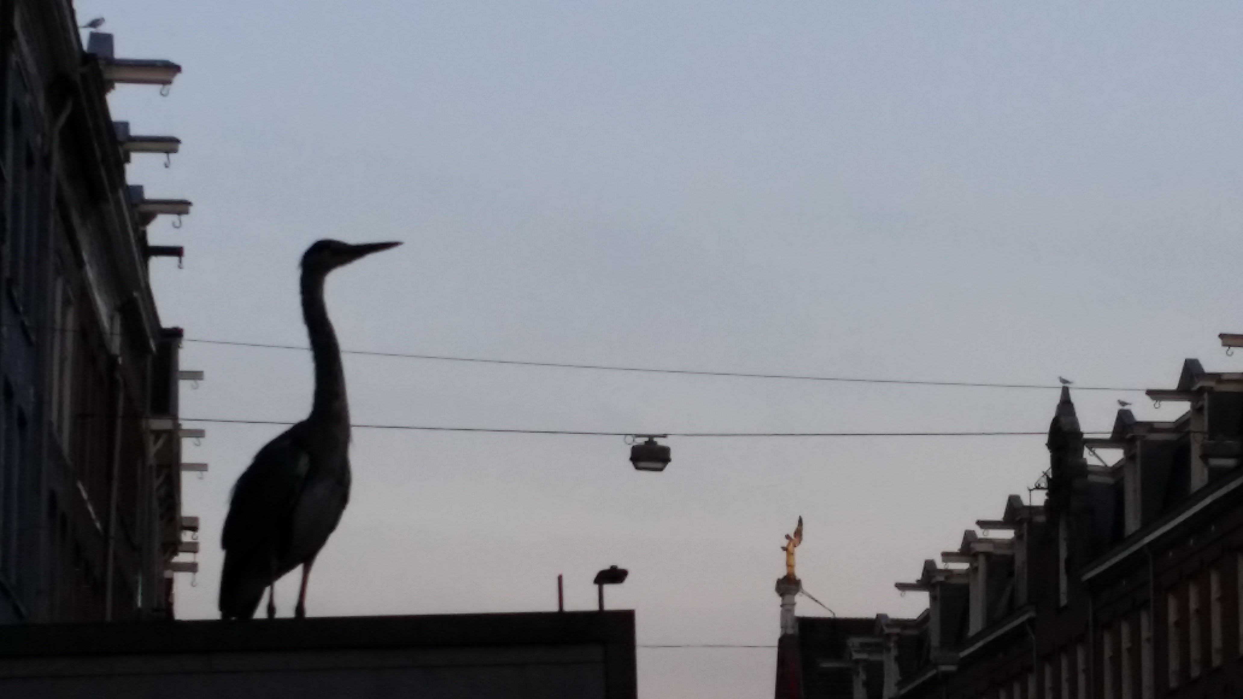 (Au fait, la photo du héron ci-dessus, je l’ai prise au marché ‘Albert Cuyp ‘ , juste après la fermeture et avant le passage des éboueurs. Il y avait une demi-douzaine de hérons autour de cet étal de poissonnerie, plus des mouettes, plus des pigeons…)