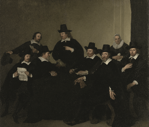 Comparez les portraits de ces Grands d’Espagne à ceux des portraits de groupe néerlandais, « Kijk ons eens ! Look at us (Regardez-nous !) ». Les premiers portraits de groupe étaient ceux des milices d’Amsterdam, les « tirailleurs ». Certes, ces hommes étaient « sûrs d’eux et dominateurs ». Après tout, c’étaient les notables de la ville qui se partageaient les postes intéressants et souvent n’étaient pas aptes du tout au combat. N’empêche qu’ils en imposent bien moins que les Grands d’Espagne, par exemple. Et à travers la pose, la nature humaine et la vie quotidienne apparaissent.