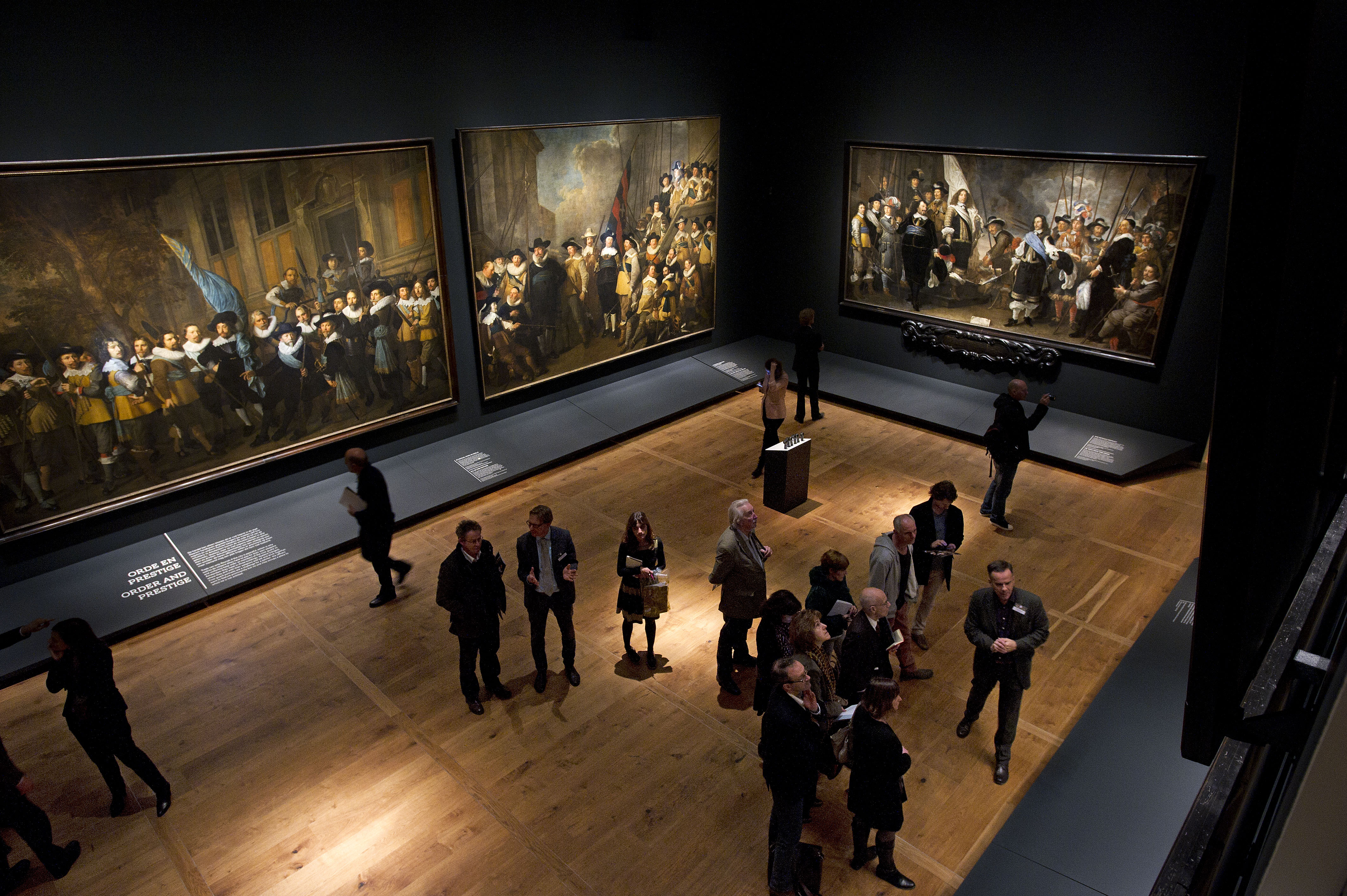 Ah ! vous auriez dû pouvoir suivre l’audiotour du photographe néerlandais Hans Aarsman, qui ne manque pas de signaler, là un bas qui descend dès qu’on court, là des chaussures vraiment inconfortables (mais si élégantes…), là encore une arme tenue d’une drôle de façon ; qui a compté l’espace qu’occupent les personnages sur le tableau (espace qui va grandissant avec le temps…) ; qui nous explique que tel commandant de telle compagnie n’était autre que le frère du bourgmestre, ou son fils, ou son cousin, et que tel lieutenant avait occupé auparavant tel autre poste élevé dans la hiérarchie de la municipalité…