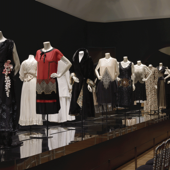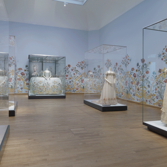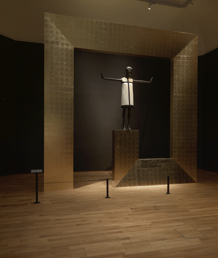 Une autre salle présente les modèles comme un défilé de mode. Les spectateurs, assis sur des chaises dorées comme chez les couturiers, voient les vêtements de différentes époques littéralement défiler devant leurs yeux. C’est fascinant.
