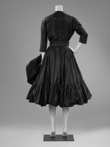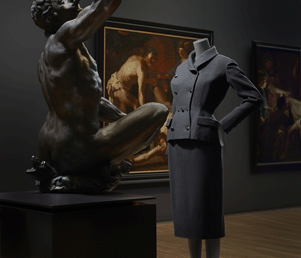 C’est le photographe Erwin Olaf qui a mis en forme l’exposition autour de différents thèmes. Une des salles montre comment la mode a évolué d’un style très contraignant (jupes ultra-larges ou au contraire très serrées, manches restreignant les mouvement des bras) vers des modèles plus souples, procurant au contraire une grande liberté de mouvement.
