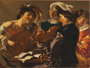Il y a aussi, par exemple, « Le concert »de Dirck van Baburen, où il se passe aussi des tas de choses non musicales, et ‑ dans le même domaine ‑ l’une des rares œuvres qui nous sont parvenues de Herman van Aldewereld, la charmante « Leçon de musique », où l’on croit entendre les chanteurs et les voir battre le rythme. Il y a « La prophétesse Anna enseignant à une enfant » de Willem Drost, où l’on lit à la fois la tendresse d’Anna et, de la part de la petite fille, à la fois son émerveillement à découvrir le monde de la lecture, et sa totale confiance en la vieille femme, son abandon même.