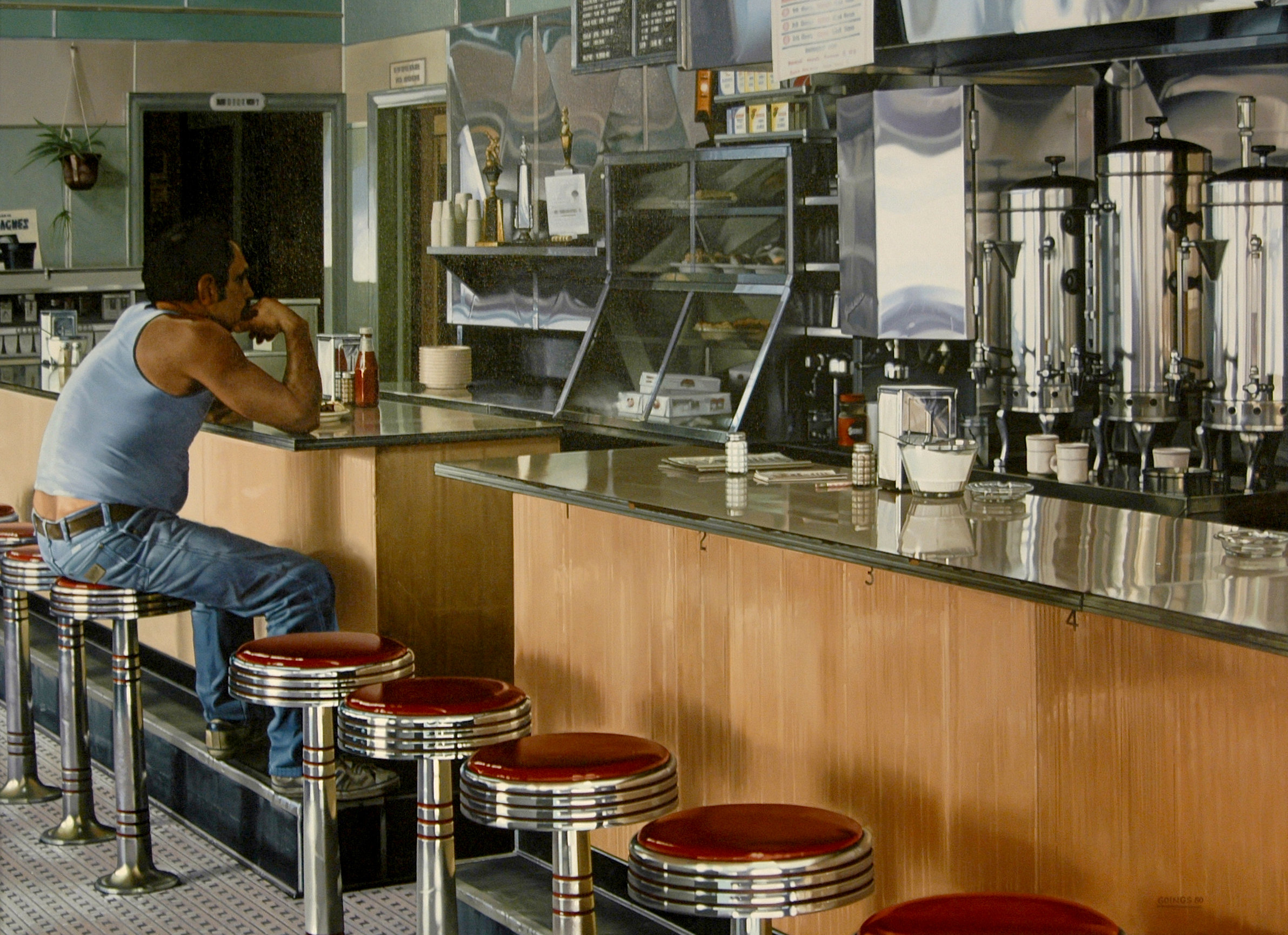 La Kunsthalle d’Emden, de son côté, a été fondée il y a un quart de siècle par l’ancien rédacteur en chef du fameux magazine Stern, avec sa collection personnelle pour base. Situé pas loin du port hanséatique d’antan, le bâtiment comme la collection respirent le temps présent, tournés vers l’avenir. A cause de leur proximité (ils sont à une heure et demie de route l’un de l’autre), les conservateurs des deux musées entretiennent de bons contacts depuis longtemps. Mais cette fois-ci, la collaboration dont ils ont parlé souvent, est devenue réalité. Cette exposition de l’art réaliste américain est beaucoup trop grande, trop coûteuse pour un seul musée, surtout un musée de province. A deux, c’est faisable ‑ et c’est fait.