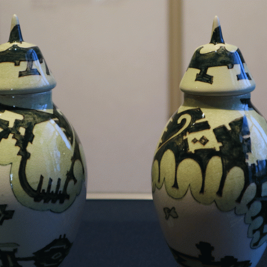 En fait, cette « rage » pour l’art et l’artisanat japonais, qui au XIXe siècle s’était déclarée un peu plus tard à La Haye qu’à Paris, n’était pas nouvelle aux Pays-Bas. Rappelez-vous que jusque vers le milieu du XIXe siècle, Les Hollandais (par l’intermédiaire de la Compagnie des Indes Orientales ou VOC) étaient les seuls à avoir des échanges commerciaux avec le Japon, à partir de leur comptoir sur l’île Dejima dans la baie de Nagasaki. Alors, déjà au XVIIe siècle, les Pays-Bas étaient inondés d’objets asiatiques, et en particulier chinois et japonais. Deux siècles plus tard, à l’instar des artistes et amateurs d’art parisiens, on a découvert les estampes, comme les vases et autres objets en céramique ou en métal. Mesdag, lui, avait une prédilection pour l’art et l’artisanat contemporain: vases, coupes, sculptures, surtout.