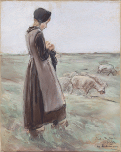 Grâce à Monet et aux autres peintres qui s’étaient réfugiés aux Pays-Bas du temps de la Commune, il découvrit aussi ce pays-là. Touché par les petites orphelines d’Amsterdam, il voulut les peindre, et seul parmi ses confrères, il réussit à se faire admettre à l’orphelinat (actuellement l’Amsterdam Museum). Tous les autres se faisaient envoyer promener, on leur donnait un costume, quitte à eux d’en revêtir un modèle de leur choix. Mais Liebermann, qui n’était plus de première jeunesse et avait des relations, inspirait confiance. Et c’est à lui que nous devons quelques belles impressions de l’orphelinat, comme de touchants portraits de jeunes orphelines. Mais son œuvre dépasse, de loin, ces tableaux de genre. Il a peint beaucoup de paysages, des scènes rurales, des bords de mer, souvent idylliques, toujours intéressantes. Et vous avez de la chance, car certains tableaux font partie de la collection permanente du musée…