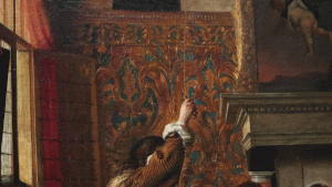 Et ces objets voyagent. C’est en particulier les tapisseries murales (en cuir!) qui deviennent un objet d’exportation par excellence. Et elles aussi, comme les cadres, comme les meubles, se retrouvent dans des tableaux (à moins qu’il ne les encadrent…), notamment des tableaux de Rembrandt. La preuve que tous ses objets décorent mainte maison aristocratique ou bourgeoise de l’époque ‑ et jusqu’au jour d’aujourd’hui on trouve dans les églises du XVIIe siècle des chancels et autres éléments au style lobé.