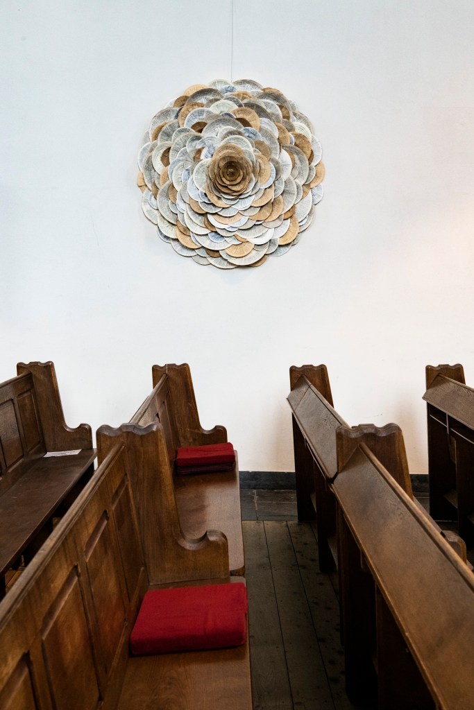 C’est triste, parce que c’était un endroit agréable, un point de repos et de réflexion. Mais Caroline Croon, la directrice du musée, refuse de se laisser abattre et organise désormais, avec les quelques collaborateurs qui lui reste, des expositions ailleurs. Les fonds de fortune dont elle dispose encore lui permettent malgré tout de demander aux artistes de son choix de réaliser des œuvres autour d’un thème d’inspiration biblique ou, tout au moins, spirituelle. En l’occurrence, le temps et l’éternité…