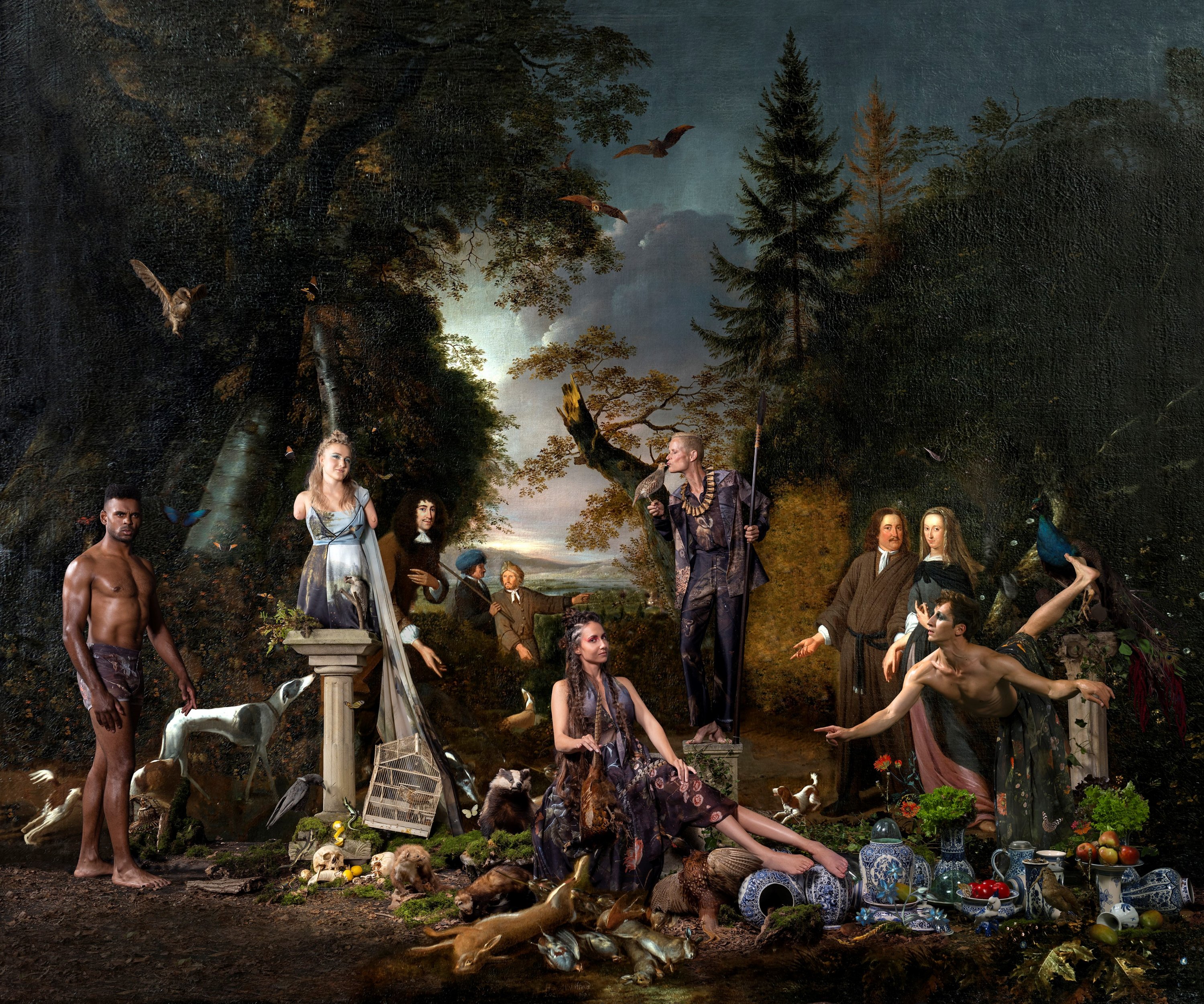 Plusieurs siècles plus tard, un artiste peintre et photographe du nom de Hans Withoos (né en 1962) découvre l’œuvre de son ancêtre, s’en imprègne et s’en inspire. Et cela donne des tableaux narratifs très intéressantes – où l’on pourrait trouver toute une symbolique aussi, nourrie non de la foi chrétienne comme chez Matthias, mais plutôt d’idéalisme humaniste et, peut-être, pacifiste – en tout cas pacifique. Et onirique. C’est ainsi qu’on voit par exemple un paysage avec des guerriers (et des guerrières), mais ils se battent pour un idéal. On voit des hommes, des femmes, et beaucoup d’enfants evoluant dans des paysages de rêve, avec la légèreté correspondante.