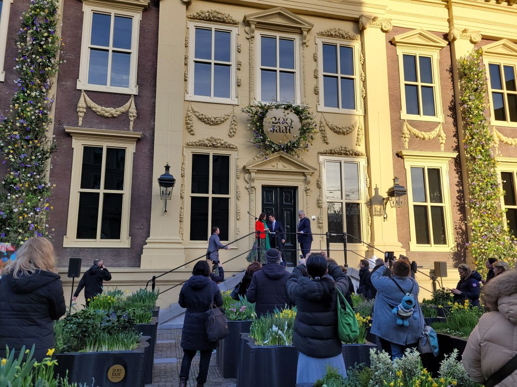 La ‘Maison de Maurice‘ – le musée Mauritshuis à La Haye – elle, fête cette année son bicentenaire, en grand. A cette occasion, le musée s’est couvert de fleurs – au sens propre: la façade a été couverte de fleurs fraîches et printanières, qui reflètent celles qui poussent temporairement dans la cour du musée, et qui symbolisent l’exposition à l’intérieur (j’espère que les tempêtes n’ont pas tout détruit… ).