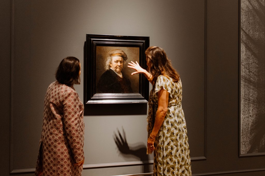 Vous trouverez toute la biographie de Rembrandt dans l’exposition, sur les murs et dans un film (sous-titré en anglais). Vous trouverez aussi différents détails de ce dernier autoportrait agrandis, et une salle représentant l’atelier de Rembrandt montre ses techniques utilisées.