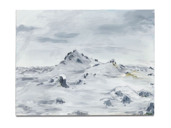 Another example of repetition. A whole wall in one big room shows several paintings of the same mountain in Iceland, Eldhraun, seen from different angles and at different times.