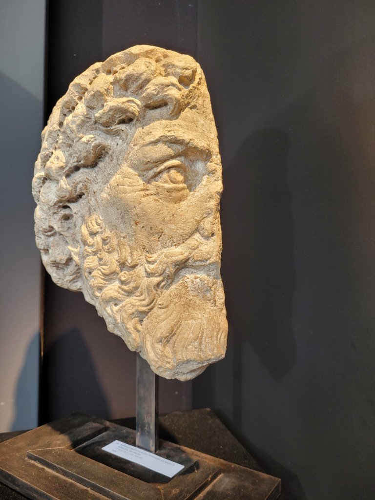 Faisant des pas de mammouth à travers le temps (à propos, j’ai vu une patte de mammouth, quelque part à PAN), j’en arrive à l’Égypte antique, au stand de Mieke Zikverberg. Et là encore, il y a de quoi se régaler. Ce qui est étonnant, c’est qu’ici, à cette foire, on peut s’approcher des pièces exposées à un point… Incomparable à la distance à respecter (à juste titre) dans les musées. Photographiant un masque grec, je pouvais en sentir l’odeur. Une odeur de vieille pierre, un peu humide, rappelant le salpêtre. Sensation curieuse, qui du coup renforce l’idée d’un voyage à travers le temps…