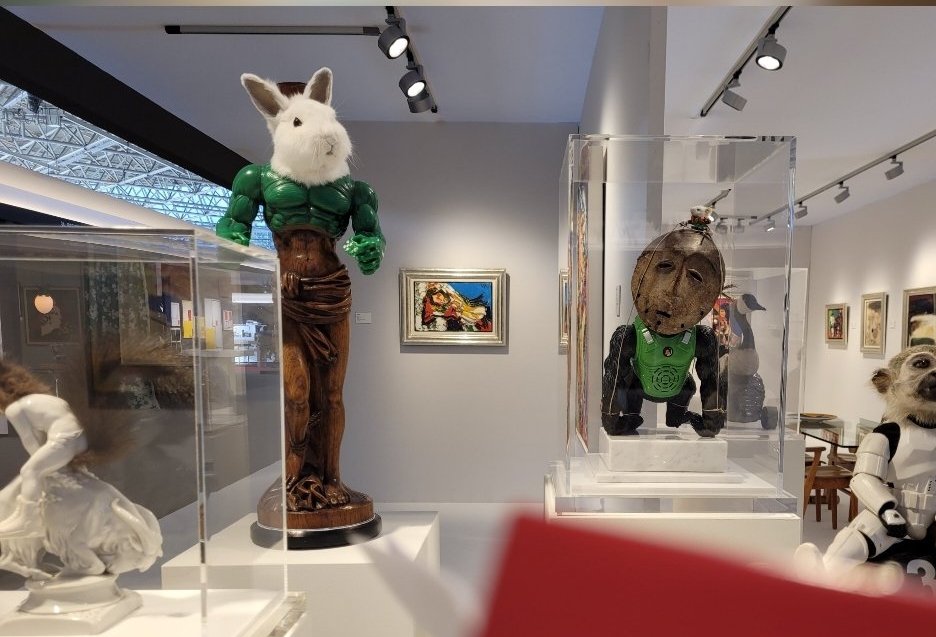 Après, on apprend que ces animaux ont été des animaux vivants, que la sculpture qu’on admire est basée sur la taxidermie. Après un premier mouvement de recul, on se dit : Qu’importe. Cela leur donne une seconde vie, à ces pauvres bêtes trouvées mortes quelque part. Grâce à ce tandem d’artistes, ils sont dorénavant Monsieur Churchill, Le Baron de Münchhausen, ou King Kong en Cognito.