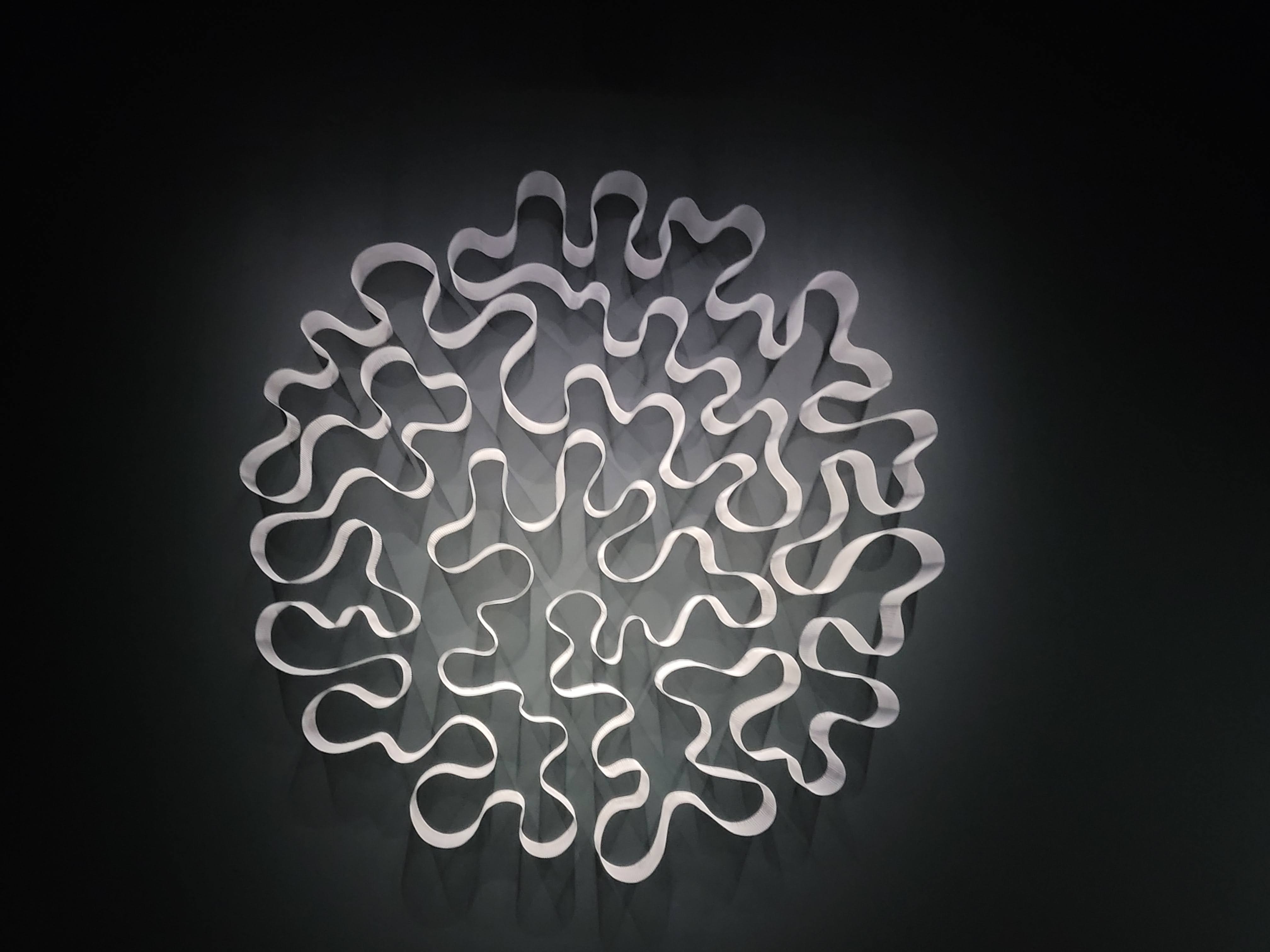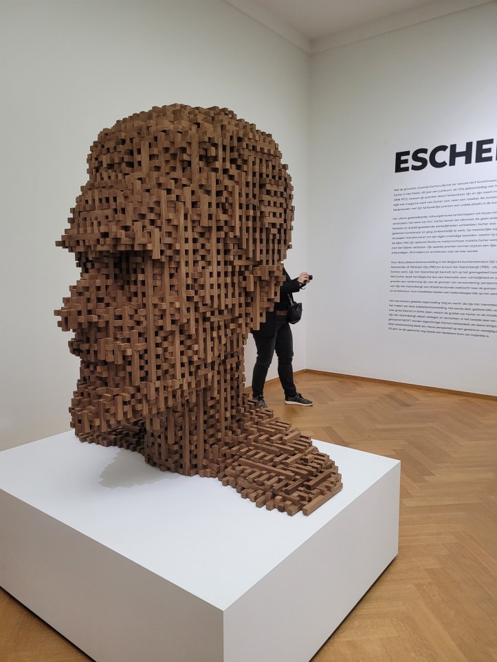 Salle après salle, on est ébloui. Aux murs, des gravures de M.C. Escher (1898 – 1972), des connues et des moins connues. Et en écho, des constructions, des installations, qui répondent à certains éléments de ces oeuvres gravées: les courbes, les lignes infinies, les tesselles, l’architecture rêvée, les illusions optiques, le blanc qui se transforme en noir, et cetera. J’avoue que je ne sais toujours pas ce que j’admire le plus: les oeuvres d’Escher, ou celles de Gijs van Vaerenbergh, Il est fascinant de voir comment les structures de Gijs Van Vaerenbergh reflètent les différents aspects de l’oeuvre gravée de Maurits Cornelis Escher.