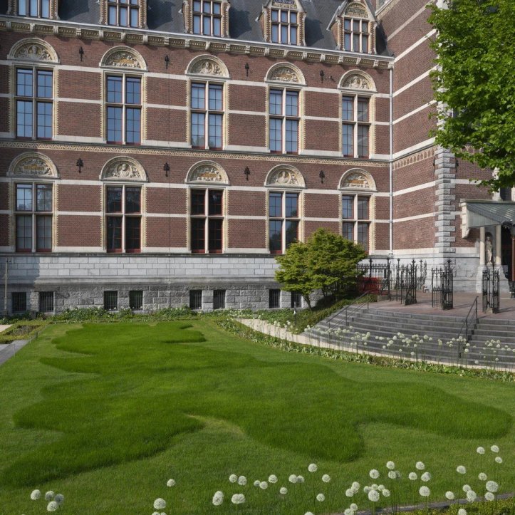 Richard Long (born 2 June 1945 in Bristol) is a walker. He walks miles and miles, in Scotland, in Nepal, in the Sierra Nevada, in the West of the United States, or in the South of France. You name it. And that is where he creates and leaves his works, often ephemeral, like a shape in the lawn – and precisely that, among other things, is what he created in the gardens of the Rijksmuseum in Amsterdam.