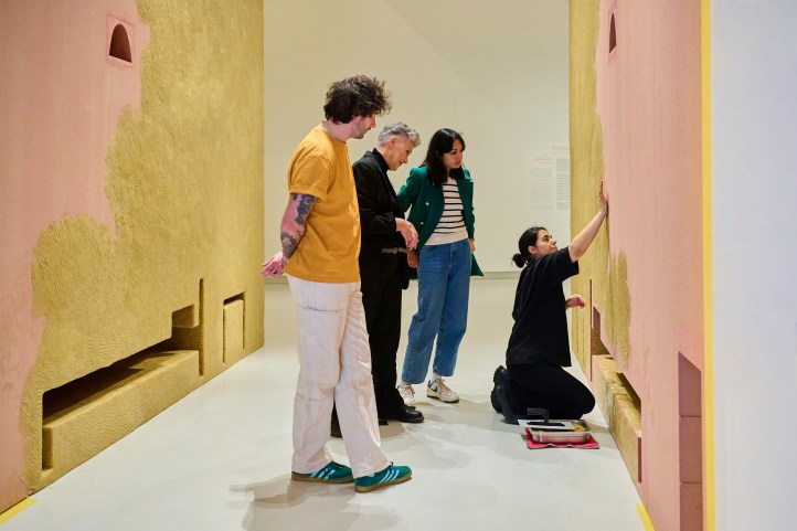 Narges Mohammadi, Passing Traces ; here, the Dutch-Afghan Artist is busy covering the walls of her imaginary home with homemade halva – 600kg of it… Photo Jan-Kees Steenman