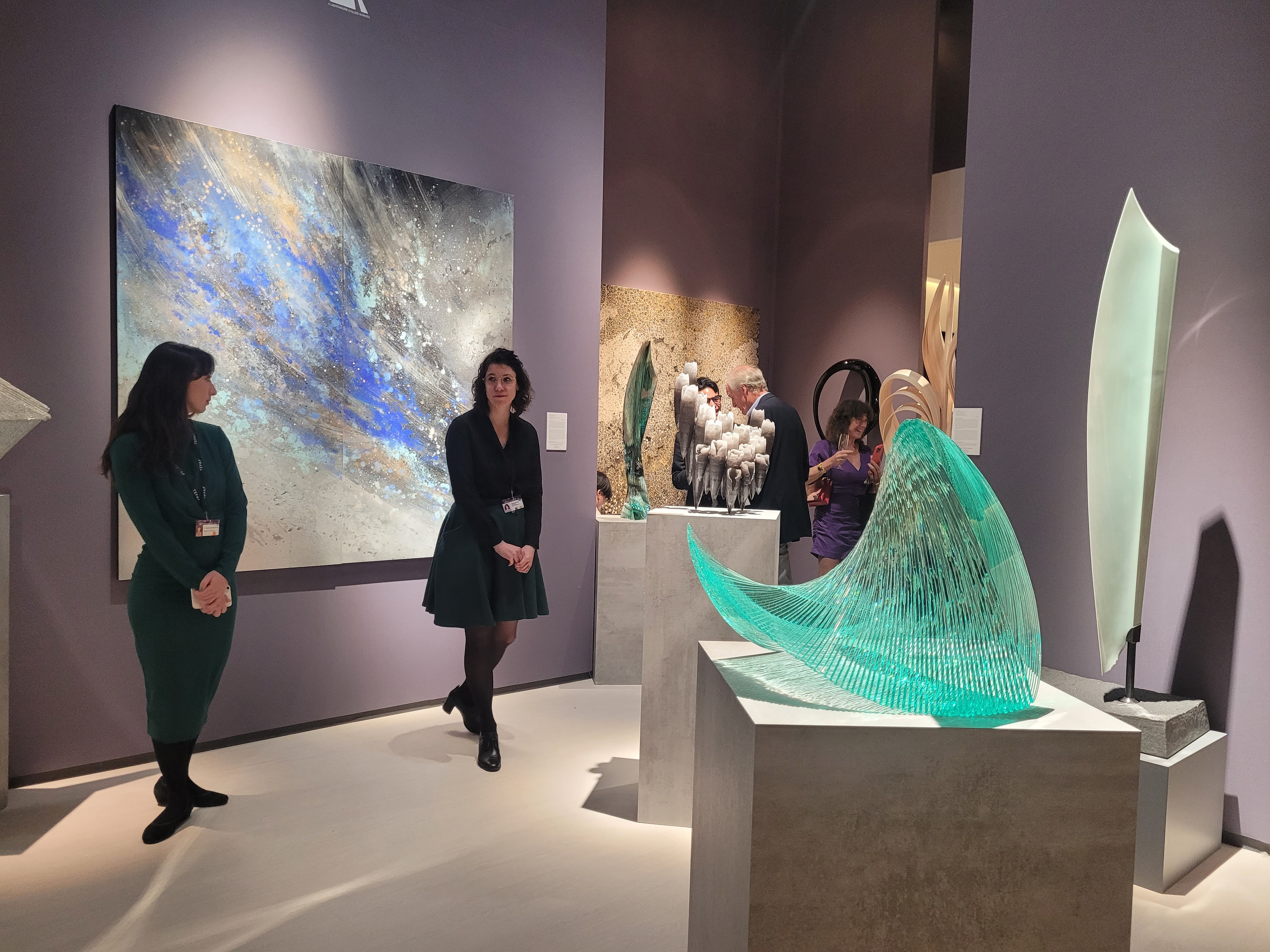 Ma plus grande découverte était peut-être l’art contemporain japonais, présenté par la maison A Lighthouse called Kanata – tout un programme. On connaît, bien sûr, un certain nombre d’artistes japonais qui souvent travaillent à l’etranger. Comme le sculpteur Shinkichi Tajiri, comme le minimaliste Rakuko Naito, et d’autres, sans oublier Yayoi Kusama et ses fameux « polkadots » ou pois, bien sûr. A Lighthouse called Kanata se spécialise dans l’art du XXIe siècle, et ses artistes s’appellent – en vrac et parmi beaucoup d’autres – Kentaro Sato, Chiko Takei, Sachi Fujikake, Nioto Ikuta (notez sa superbe « vague » en verre qui rappelle celle, célèbre, de Hokusai – mais qui en réalité fait partie d’une série intitulée « Free Essence » ), ou le sculpteur (« metal artist ») Satoru Ozaki (dont « The Path to Spring », 2024, a été vendu dès les premiers jours du TEFAF). J’omets encore bien d’autres noms qu’il va falloir retenir…