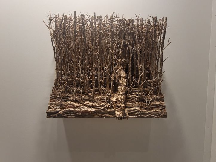 Un peu plus loin, voici les joyeuses – et sylvestres – sculptures en carton d’Eva Jospin à l’entrée de la Galleria Continua. Et remarquez, enfin, que dans la partie de la foire qui s’intitule « Focus », une galerie, Patrice Trigono, consacre son stand tout entier aux femmes – des peintres comme Vieira da Silva ou Dora Maar (mais oui), ou bien des sculptrices aussi différentes que Germaine Richier ou Carolein Smit. Bonne initiative !