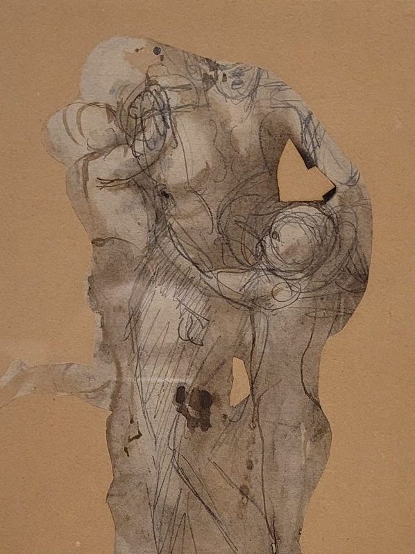 Durant son séjour de six ans en Belgique, Rodin s’est aussi mis à peindre. Il a même peint beaucoup, des personnages, mais aussi des paysages. Habitant en lisière de la forêt de Soignes, il y faisait souvent de longues promenades avec sa compagne, Rose Beuret (qui le protégeait de son grand parapluie s’il pleuvait…), faisant des dessins d’après lesquels il faisait plus tard des peintures. De même, il allait fréquemment dans les musées admirer les tableaux des maîtres anciens – en particulier Rubens – dont il faisait plus tard des « copies »… de mémoire. Les historiens d’art semblent d’accord pour dire qu’en tant que peintre, Rodin n’avait rien d’extraordinaire. J’aime bien celles que j’ai vues – des peintures qu’on pourrait qualifier d’impressionnistes, mais qui ne révolutionnent pas la peinture. Par contre, ses dessins – que je ne connaissait pas – on peut les qualifier d’extraordinaires, eux. Et si sa « carrière » de peintre se soit limitée à sa période bruxelloise, dessiner, Rodin l’a fait toute sa vie, ne cessant de retravailler et de modifier des dessins antérieurs.