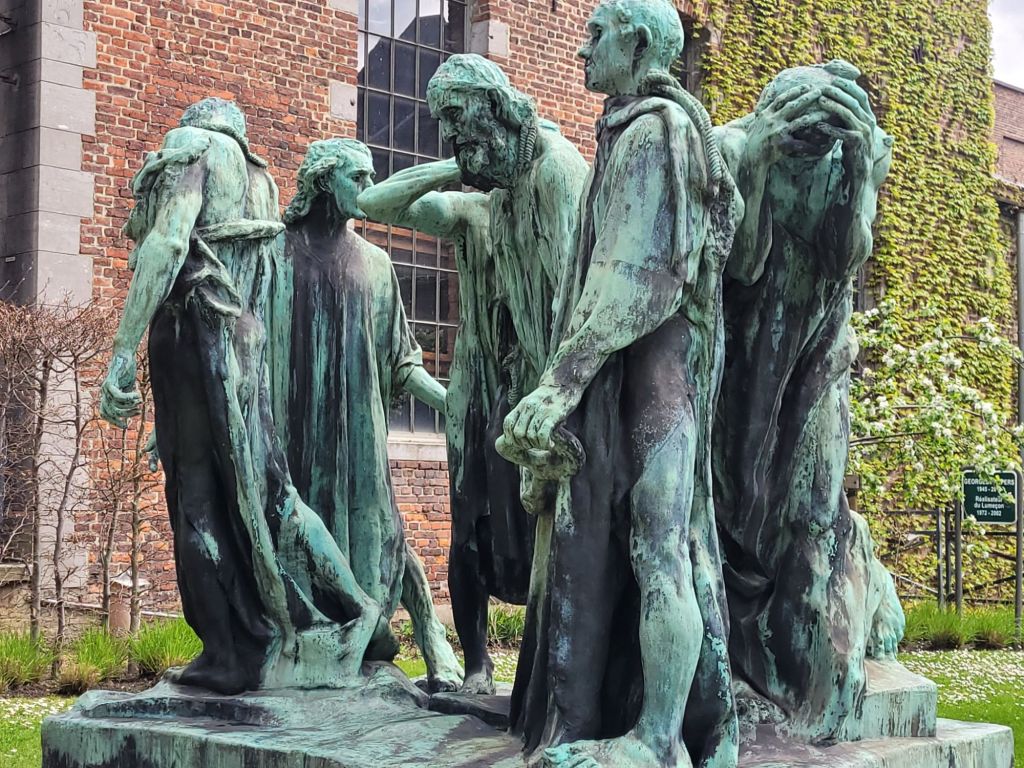 Shown here: A room in the Rodin exhibition in Mons, showing models of two of the burghers of Calais (left, Pierre de Wissant).