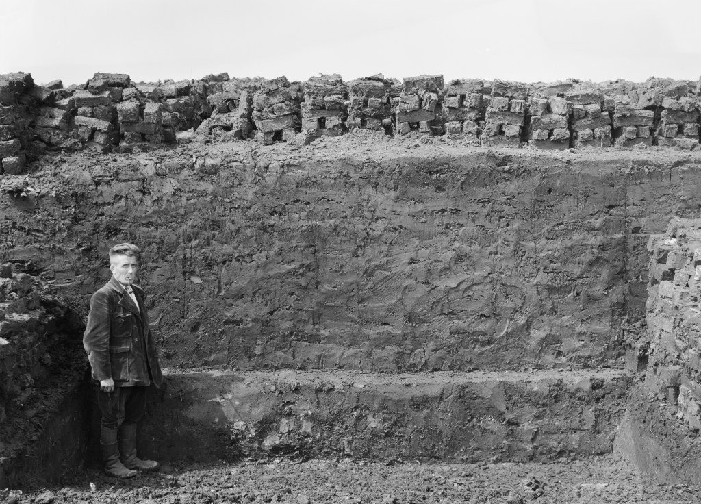The exhibition shows all this, but focuses in particular on the immediate surroundings of the museum, the countryside around ‘s Hertogenbosch (or Den Bosch). It doesn’t matter : the changes observed here are more or less the same as everywhere else, give or take. So the visitor is taken through a curtain made of jute (a fabric associated with rural life and agriculture) to a room with early 19th-century paintings of rural life – sometimes with a hint of a city at the horizon. Another curtain, made of synthetic material used at building sites, leads to more recent works, often photographs, showing the evolution of the use we made (and make) of the countryside (digging peat, fishing, keeping sheep or cattle, introducing agricultural engines, industrialisation…).
