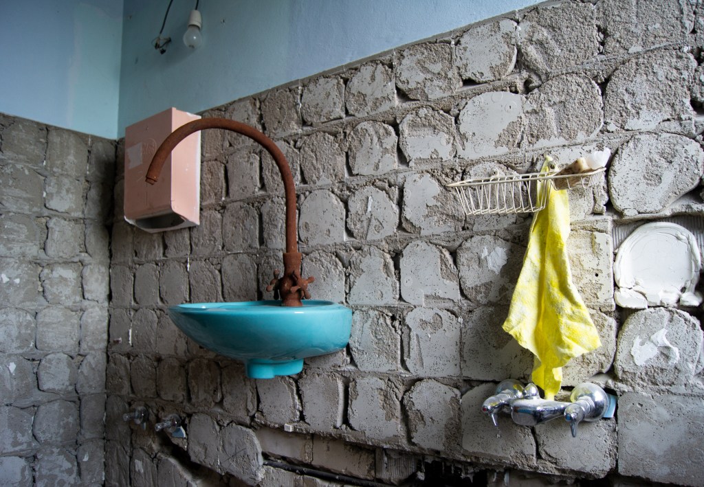 Ce qu’on constate, c’est que la vie quotidienne joue un grand rôle. Un (trop) petit lavabo comme on en trouve souvent dans les toilettes aux Pays-Bas, par l’Allemande Kira Fröse (voir plus bas). Comme dans la peinture ci-dessus, de l’australo-néerlandais Kelli Smith : une grand-mère et son petit-fils qui viennent de faire des courses dans un grand supermarché. En exagérant à peine, on pourrait dire que c’est tellement banal que cela en devient fascinant Ou encore les petites scènes en apparence anodines filmées et dessinées par Anna Reerds : des machines à laver qui tournent dans une laverie automatique ; ou bien une dame pipi et sa soucoupe à sous… C’est extraordinaire, les détails de telles oeuvres, qui sont autant de commentaires (souvent humoristiques) sur la vie de tous les jours, la vie de gens « ordinaires »
