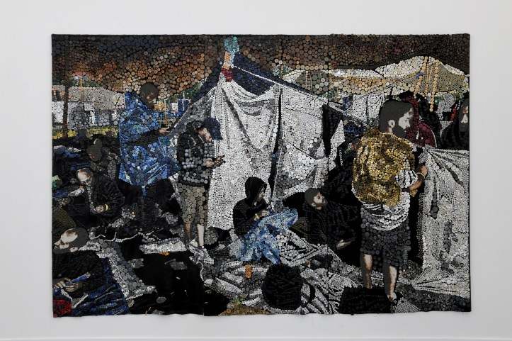 Some artists show scenes of our daily life, people who are shopping (Kelli Smith), washing machines in a launderette (Anna Reerd), a wash basin (Kira Fröse). Others put a finger on what’s wrong in our society, the widows of Srebrenica (Ronald Ophuis), the treatment of asylum seekers (Joyce Overheul), the pollution by Tata Steel (Tinkebell), or ( people living in extreme poverty in  Arizona (Tony Dočekal).. Others again show series of portraits, of people during the pandemic (Rosa Everts), of transgenders, of  undocumented people (Himmelsbach), thus creating « a monument for the undocumented »… And some just represent objects – fruits on a tree (Jasper Hagenaar), part of a car, a sheet…