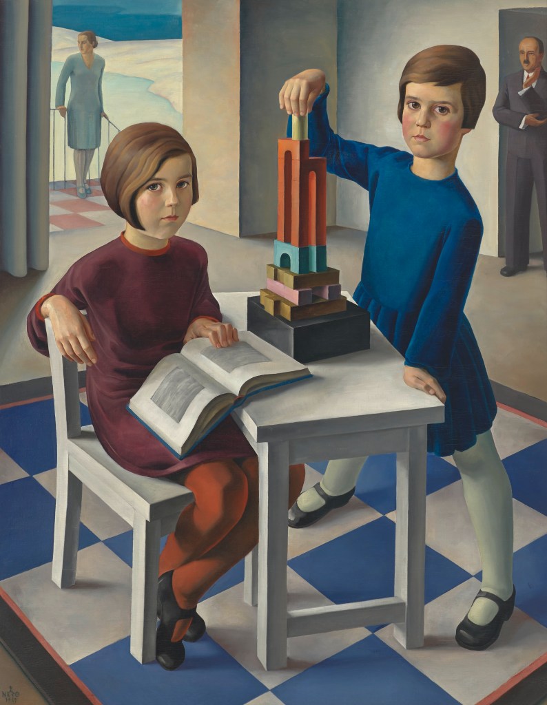 Dans tous les pays d’Europe, les artistes se détournaient de l’art abstrait et se tournaient vers une forme ou l’autre du réalisme. Les femmes commencèrent à se manifester davantage, à s’affirmer – en tant que femmes, et en tant qu’artistes. On regardait vers l’extérieur, souvent littéralement – on célébrait « le progrès » (quel qu’il soit), les sports, la vie en plein air, la vie tout court… Les horreurs de la guerre ? Oui, elles sont là, parfois, mais de moins en moins… jusqu’à ce que, de nouveau, des nuages s’amoncellent à l’horizon…