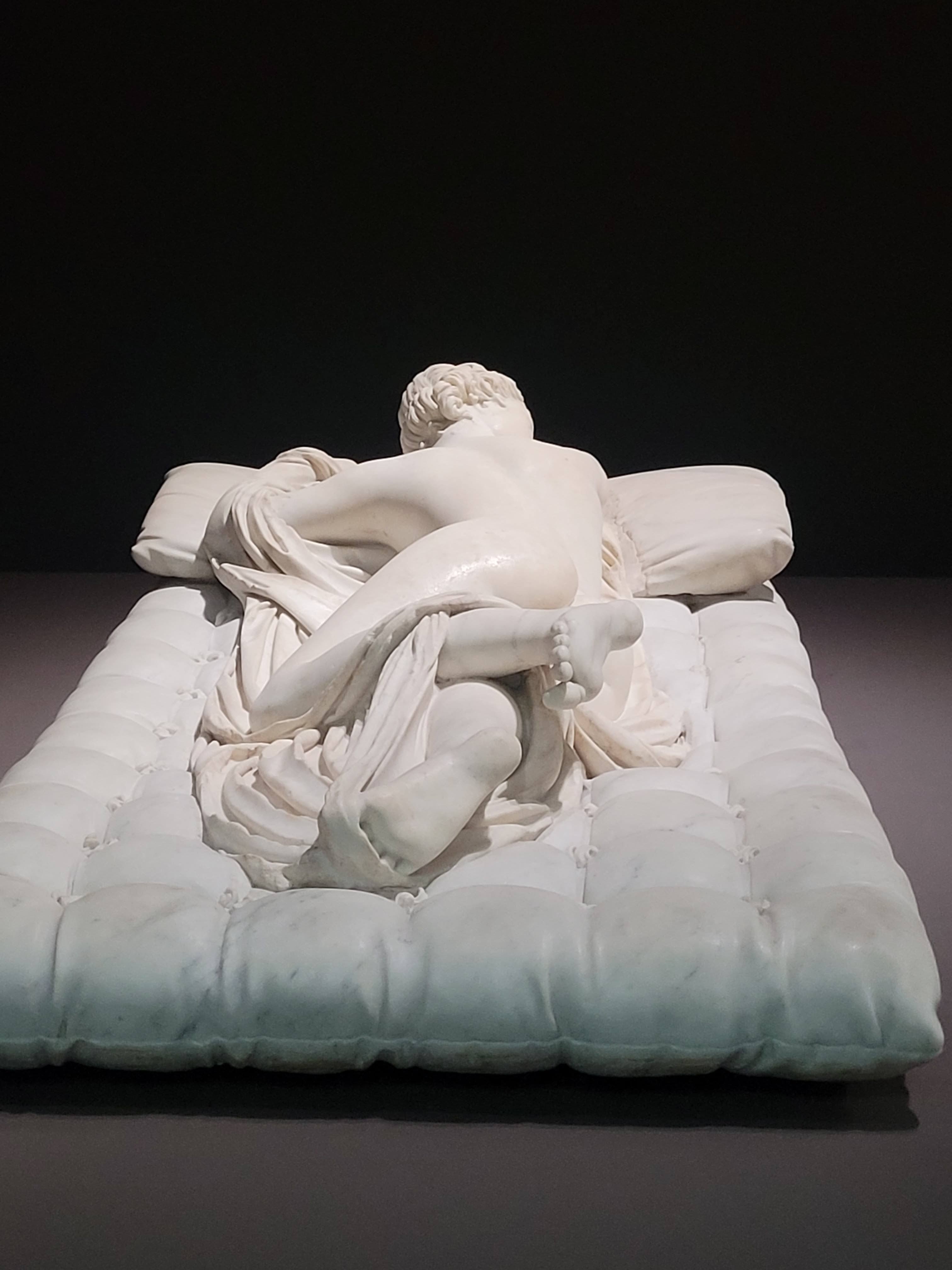 In 1619, a 2nd century sculpture of Hermaphroditis was digged up in Rome. It was offered to cardinal Scipione Borghese, who asked the sculptor Gian Lorenzo Bernini to create a plinth for it. Bernini sculpted a mattress, which had a miraculous effect. It brought the marble to life.
