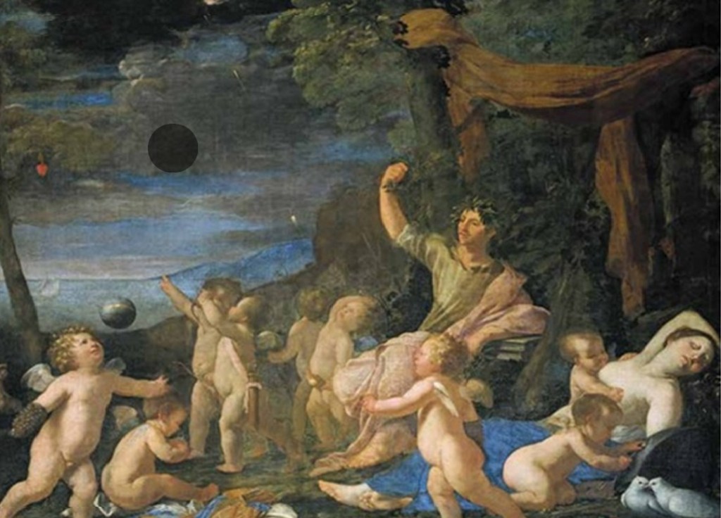 Cela commence par Poussin, « évidemment », je serais tentée de dire. Poussin et son « Triomphe d’Ovide », où trône le poète, couronné de lauriers et brandant une branche de myrte (symbole de Vénus), tout en étant entouré de putti , d’amarini et de tourterelles.